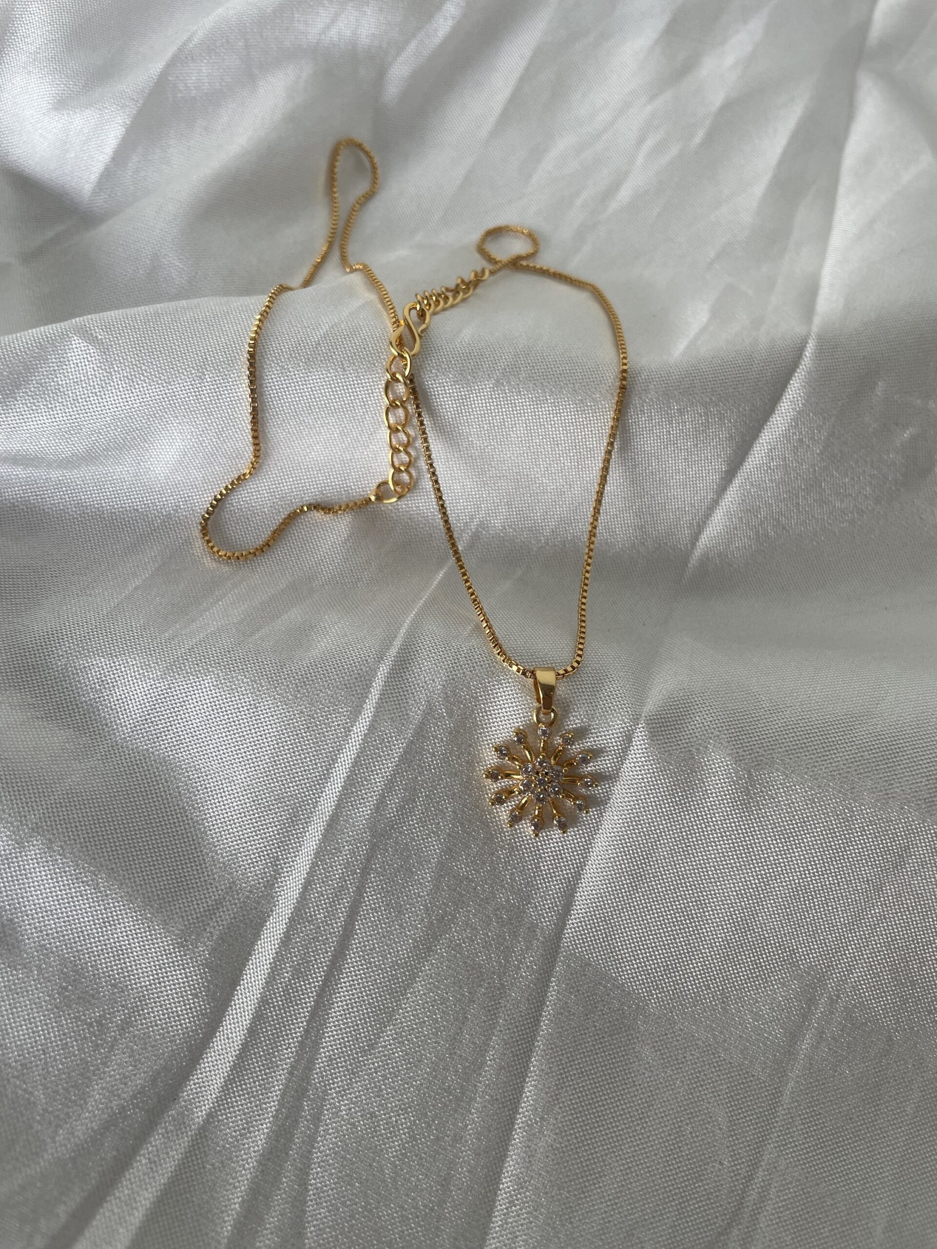 ✨ Elevate your everyday look with this stunning 24ct gold plated AD stone necklace. Designed with a radiant sunburst pendant, it sparkles beautifully while adding a touch of elegance to any outfit. 🌟 Crafted with premium quality materials, this piece is anti-tarnish, ensuring long-lasting shine and durability. Its lightweight design makes it perfect for daily wear, giving you comfort without compromising on style. 💛 A timeless choice for women who love to shine effortlessly, whether it’s for work, casual outings, or special moments.