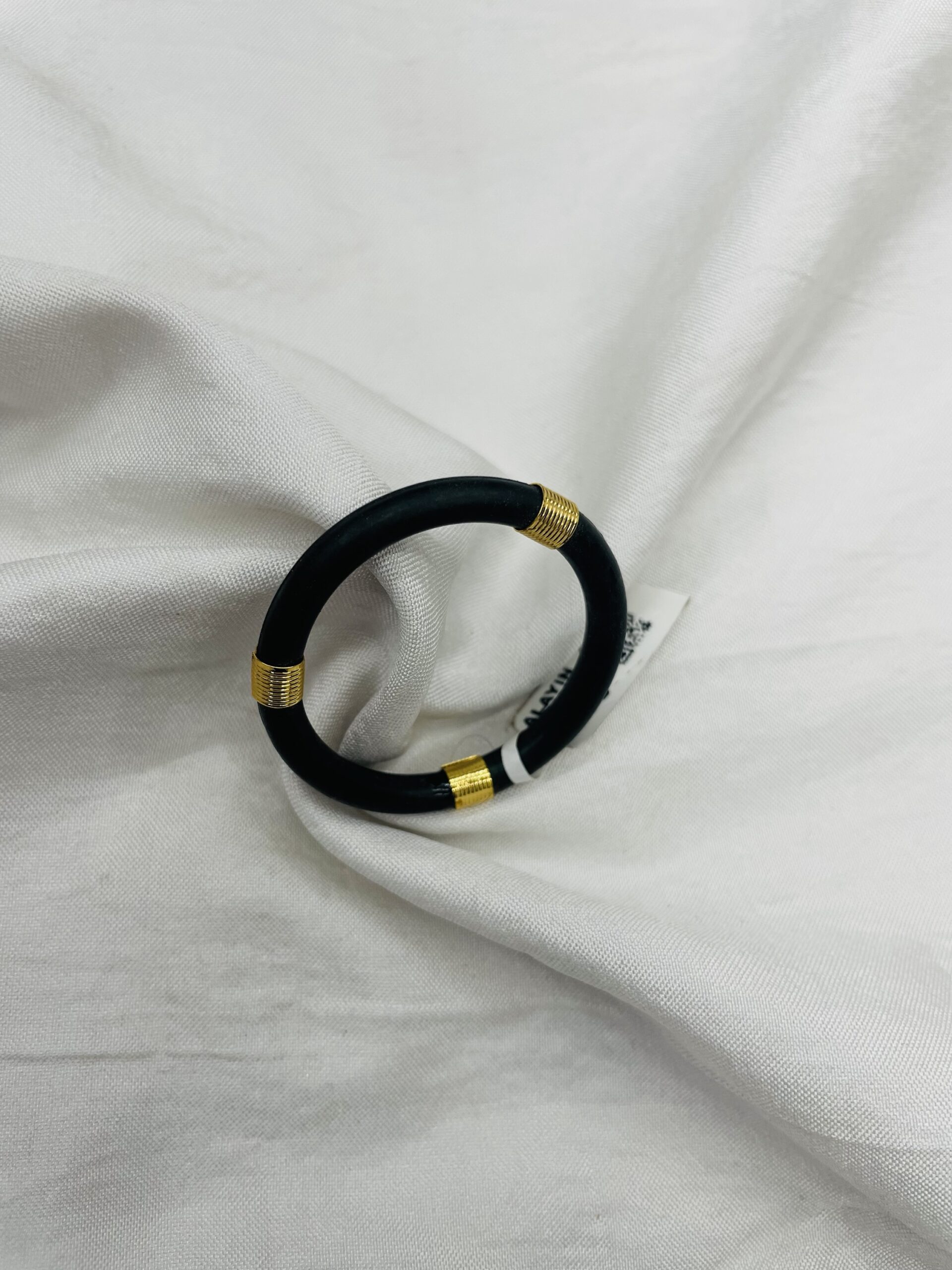 Elegant black and gold baby bangle crafted with a smooth, rounded finish for safe and comfortable daily wear. Lightweight, skin-friendly, and perfect for little hands.