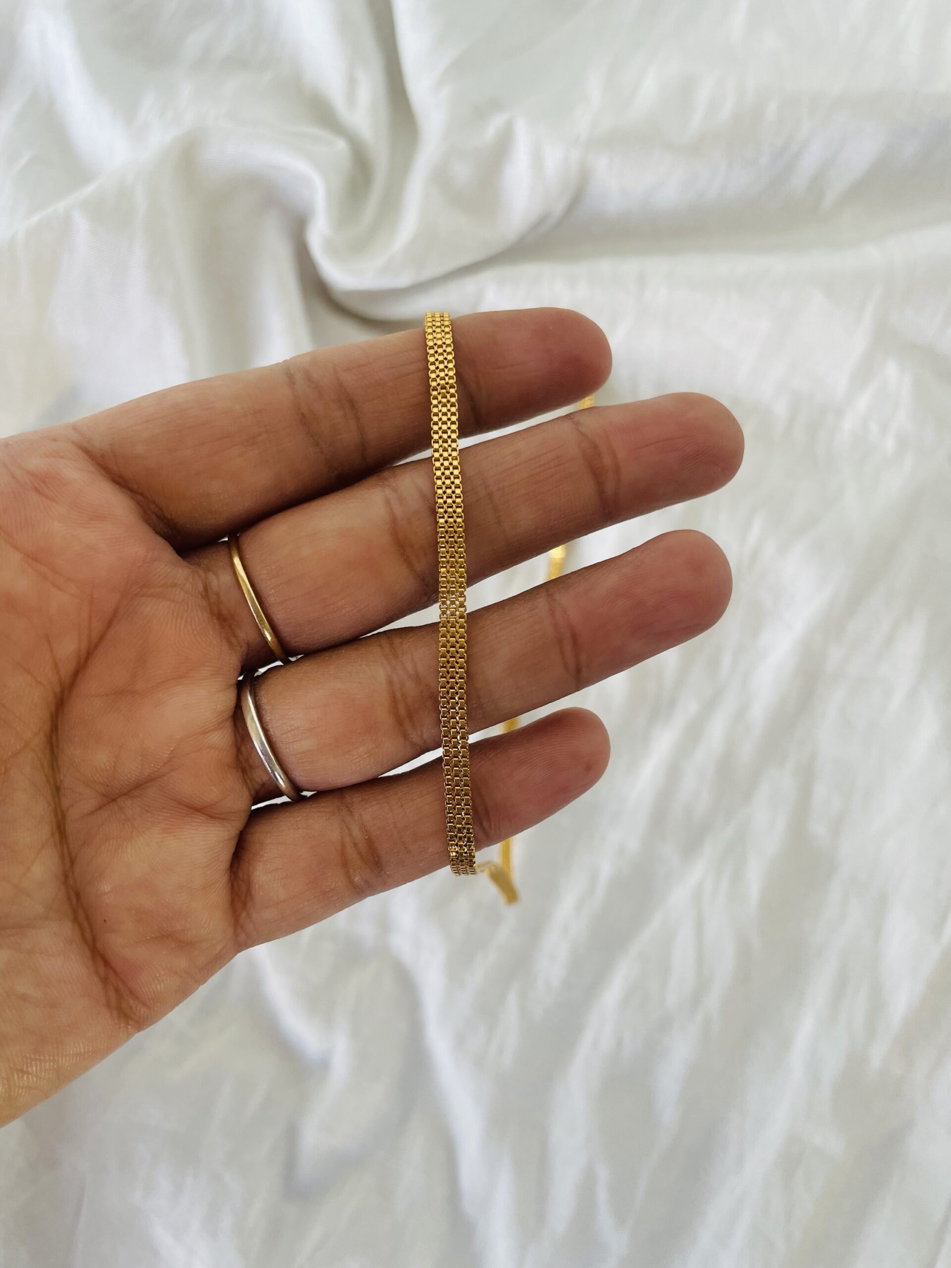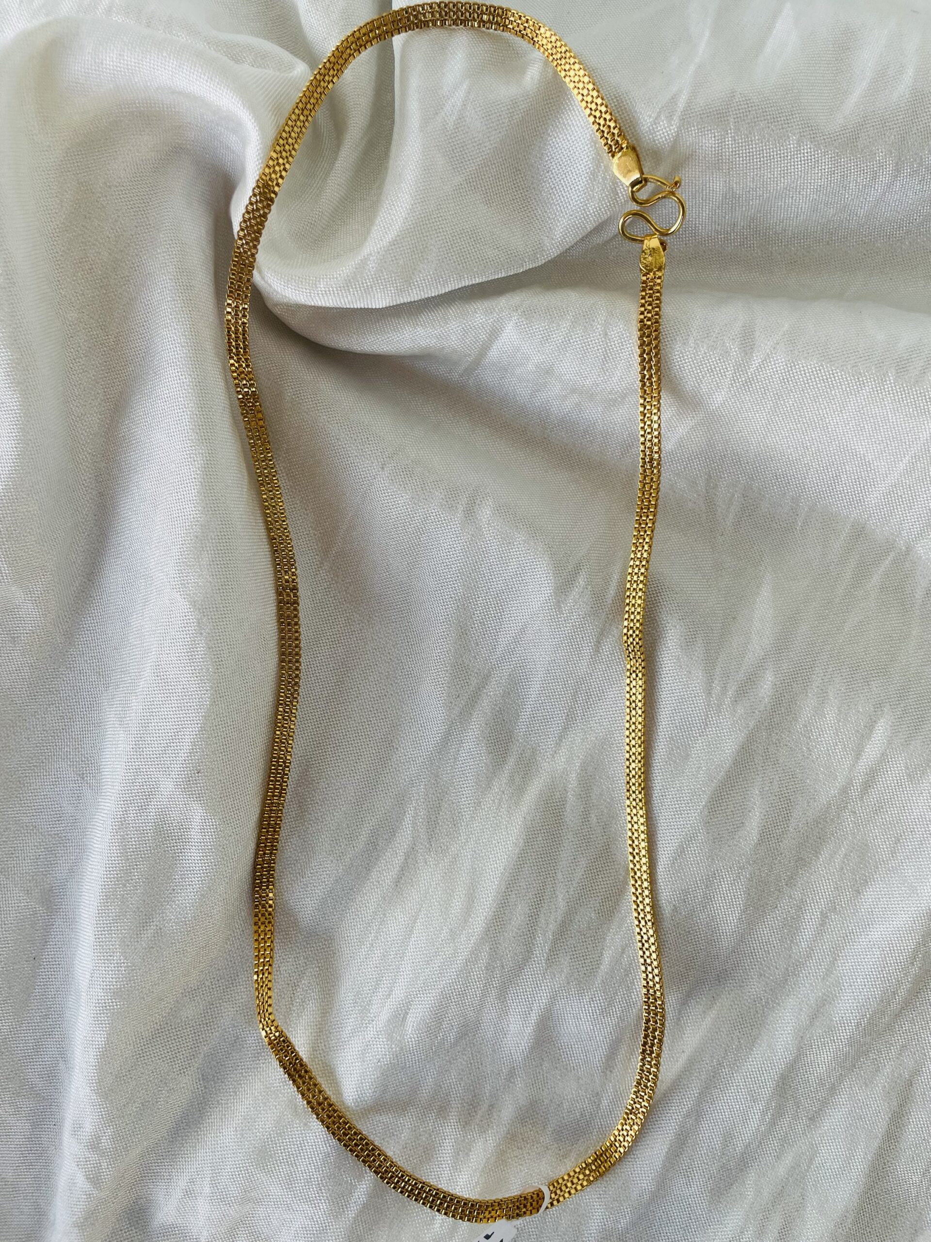 This 18-inch chain is crafted with premium quality and finished with rich 24ct gold plating for a luxurious shine. Designed for daily use, it is skin-friendly, comfortable, and made to stay bright and beautiful for a long time. Its simple yet classy look pairs effortlessly with casual, office, and festive outfits, making it a perfect everyday essential. A long-lasting accessory that adds a touch of elegance to your style.
