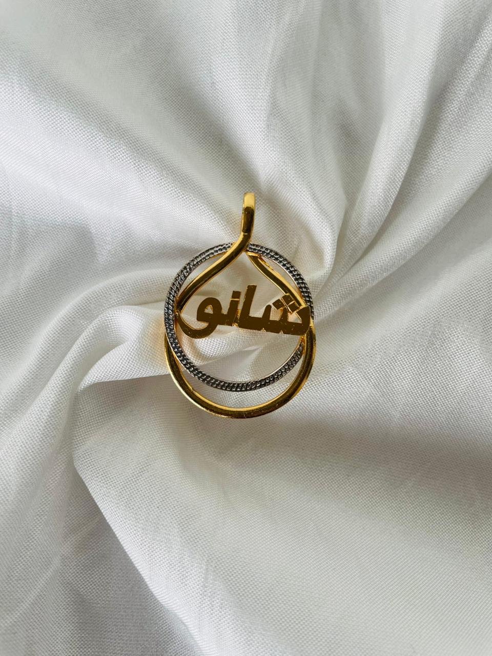 A timeless piece of jewellery designed just for you. This stunning pendant is crafted with a luxurious 24ct gold plated finish, featuring a circular frame adorned with delicate heart accents. At its centre, your chosen name is beautifully inscribed in elegant Arabic or English calligraphy, making it a truly personal keepsake.