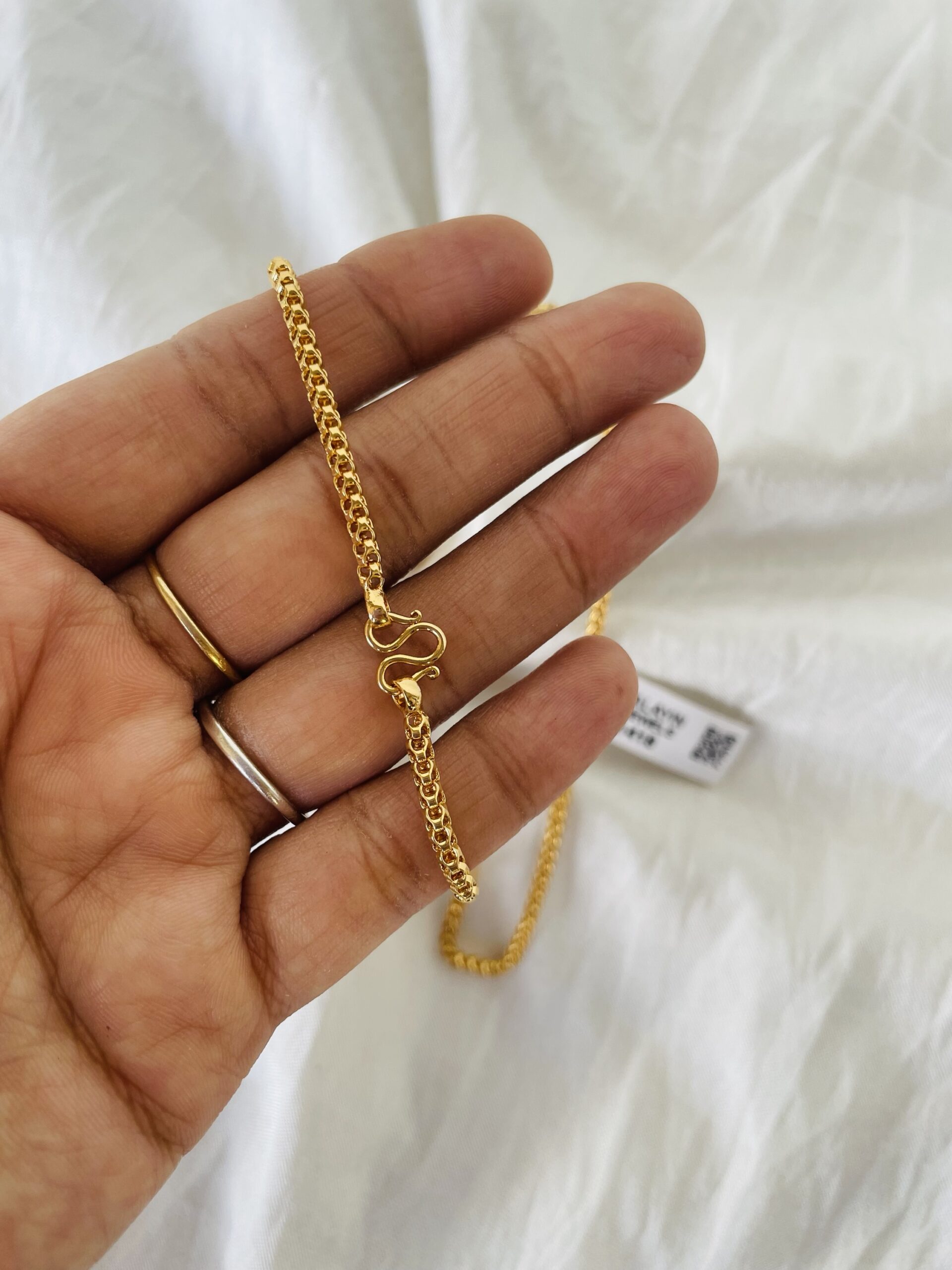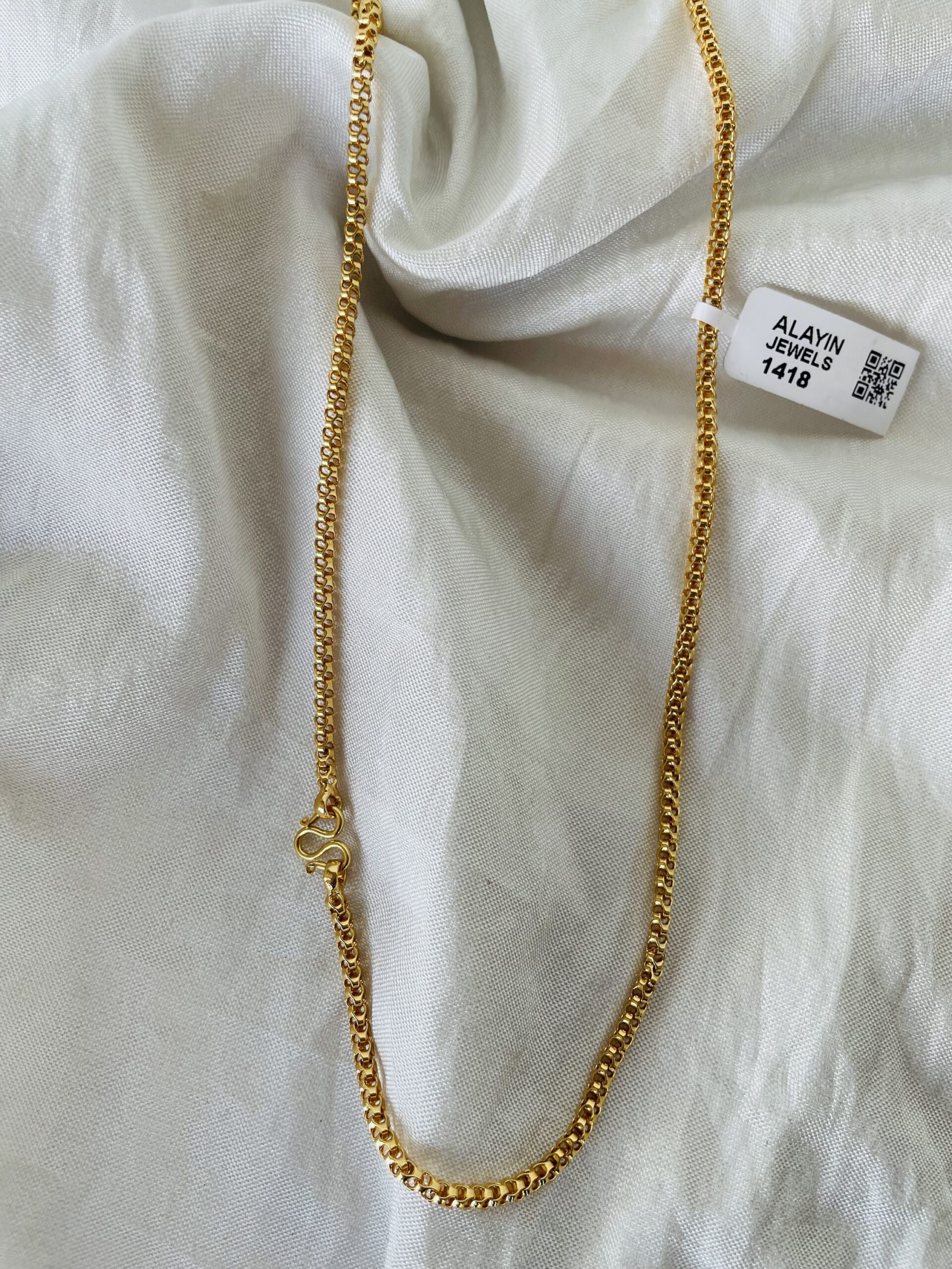 This 18-inch chain is crafted with premium quality and finished with rich 24ct gold plating for a luxurious shine. Designed for daily use, it is skin-friendly, comfortable, and made to stay bright and beautiful for a long time. Its simple yet classy look pairs effortlessly with casual, office, and festive outfits, making it a perfect everyday essential. A long-lasting accessory that adds a touch of elegance to your style.