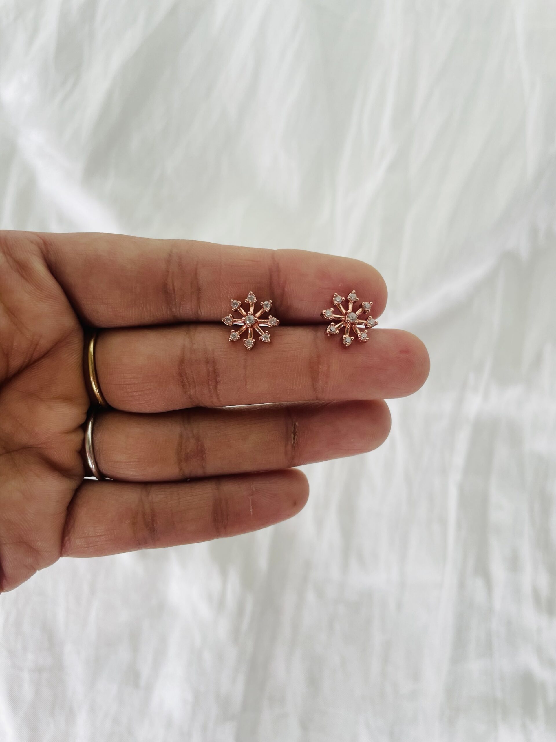 Elegant flower stud crafted with sparkling AD stones, perfect for daily wear or special occasions. 🌸💎