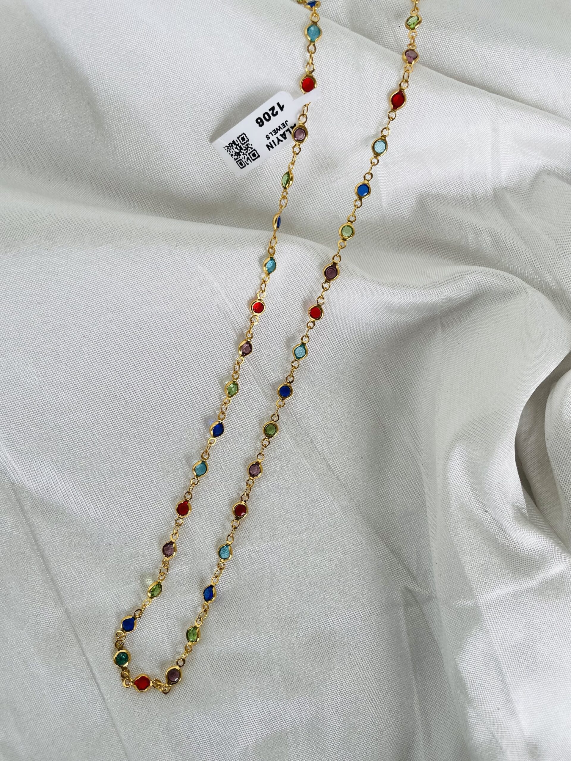 Soofi multi-crystal chain with vibrant stones, elegant design, and perfect for both daily wear and special occasions.