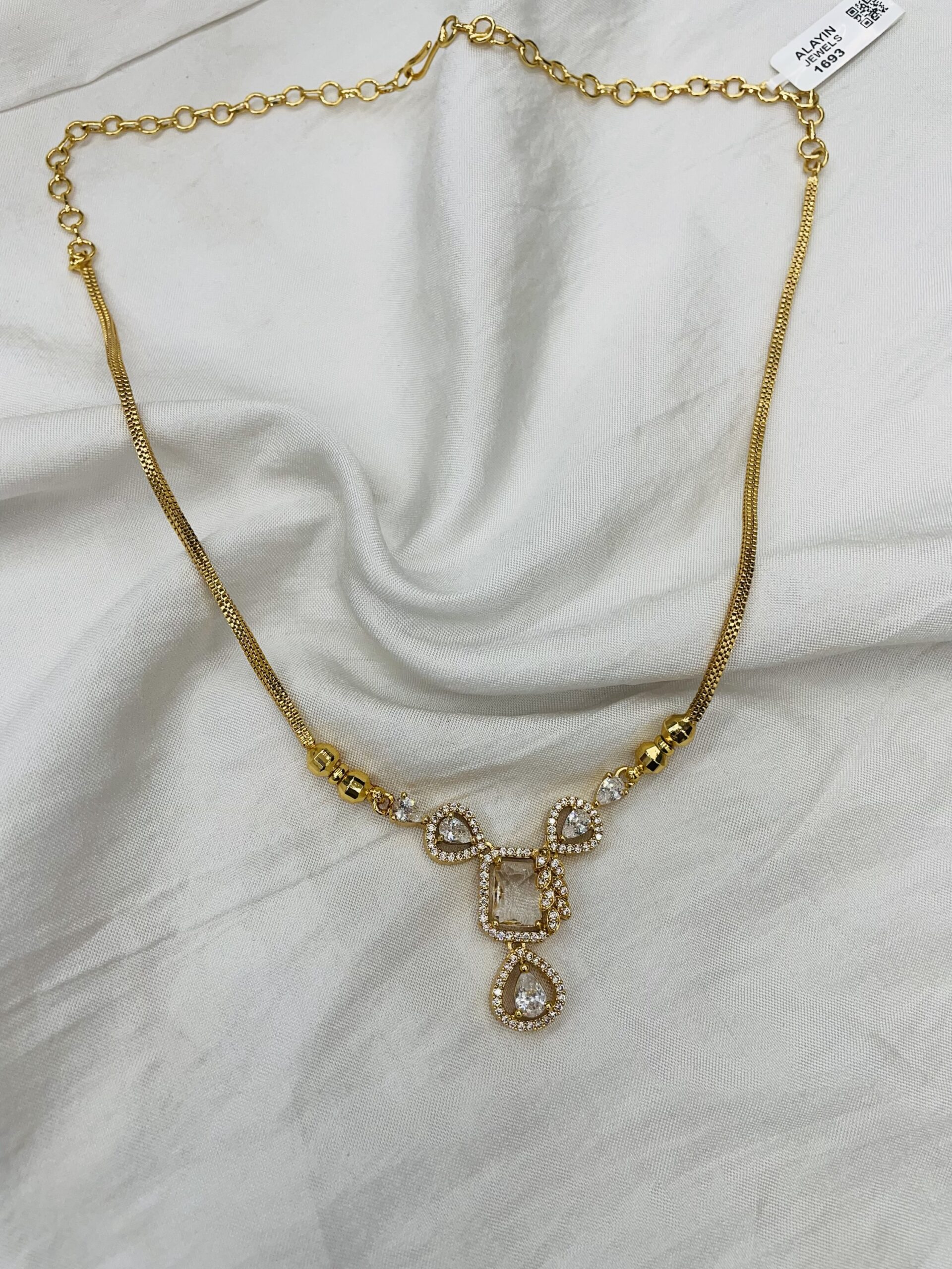 Elegant AD stone neck piece designed for functional use, featuring a versatile and stylish design suitable for daily wear as well as special occasions.