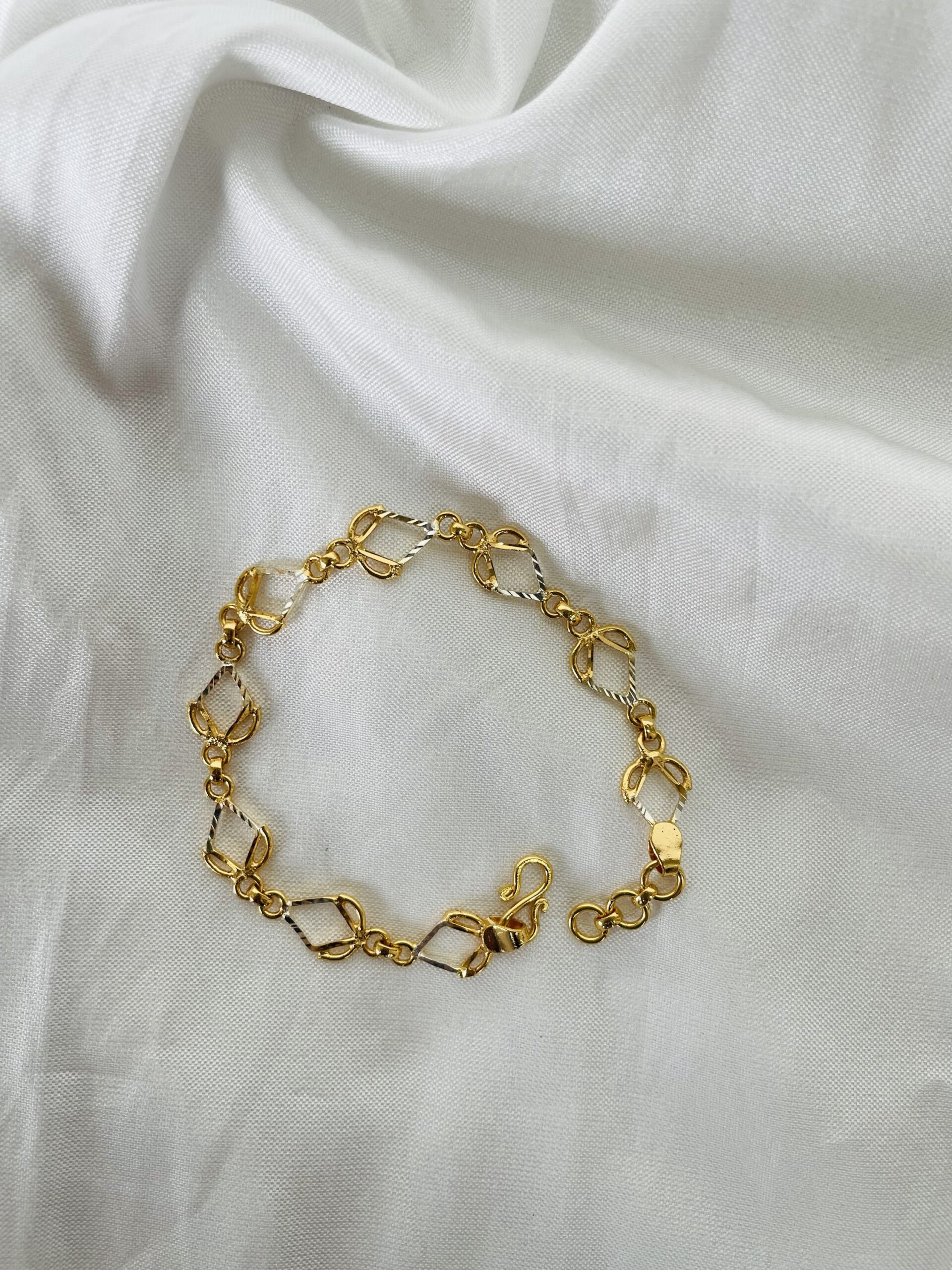 Elegant handmade white-gold bracelet with an exact gold finish. Perfect for daily wear — stylish, durable, and long-lasting.