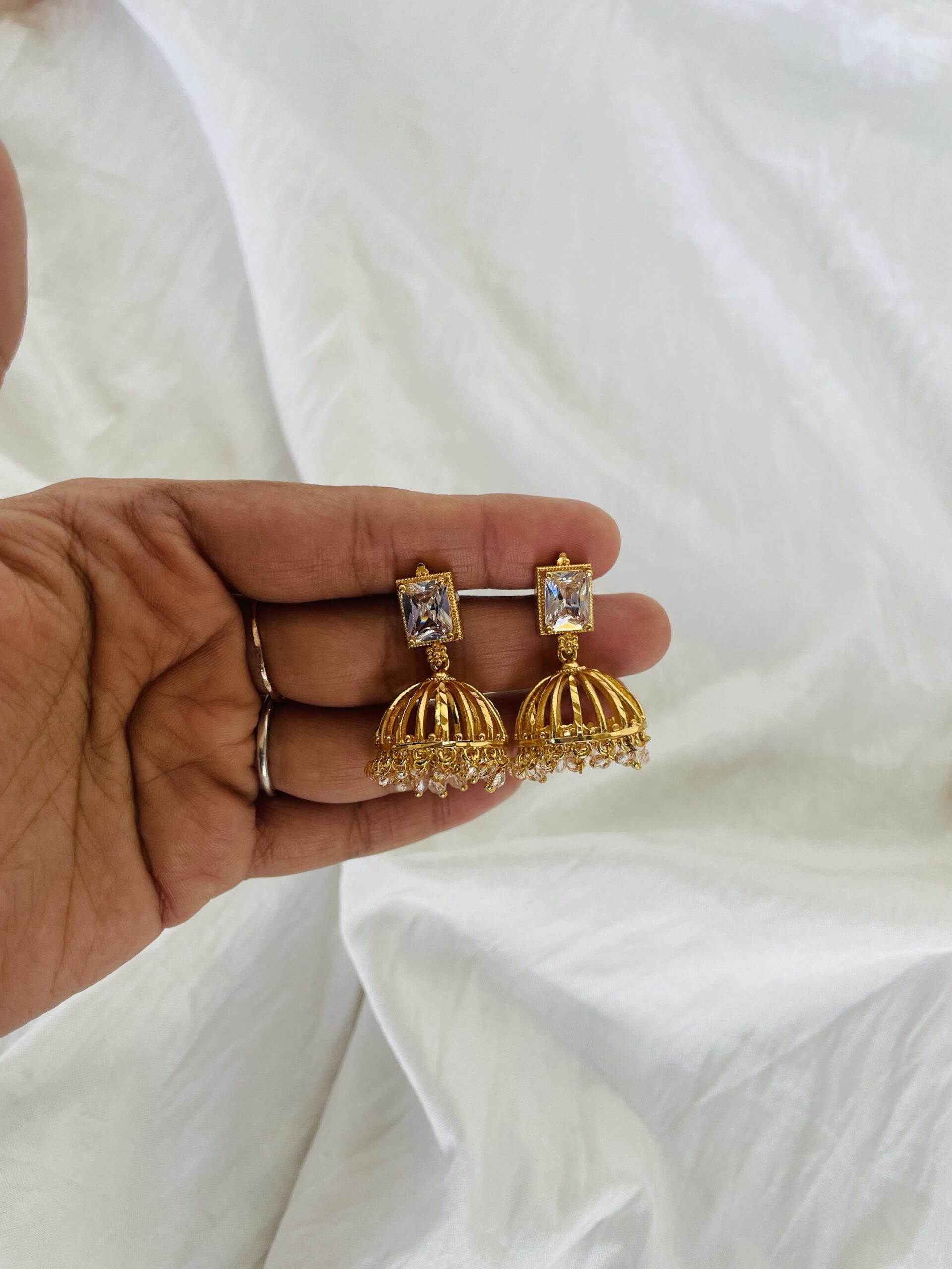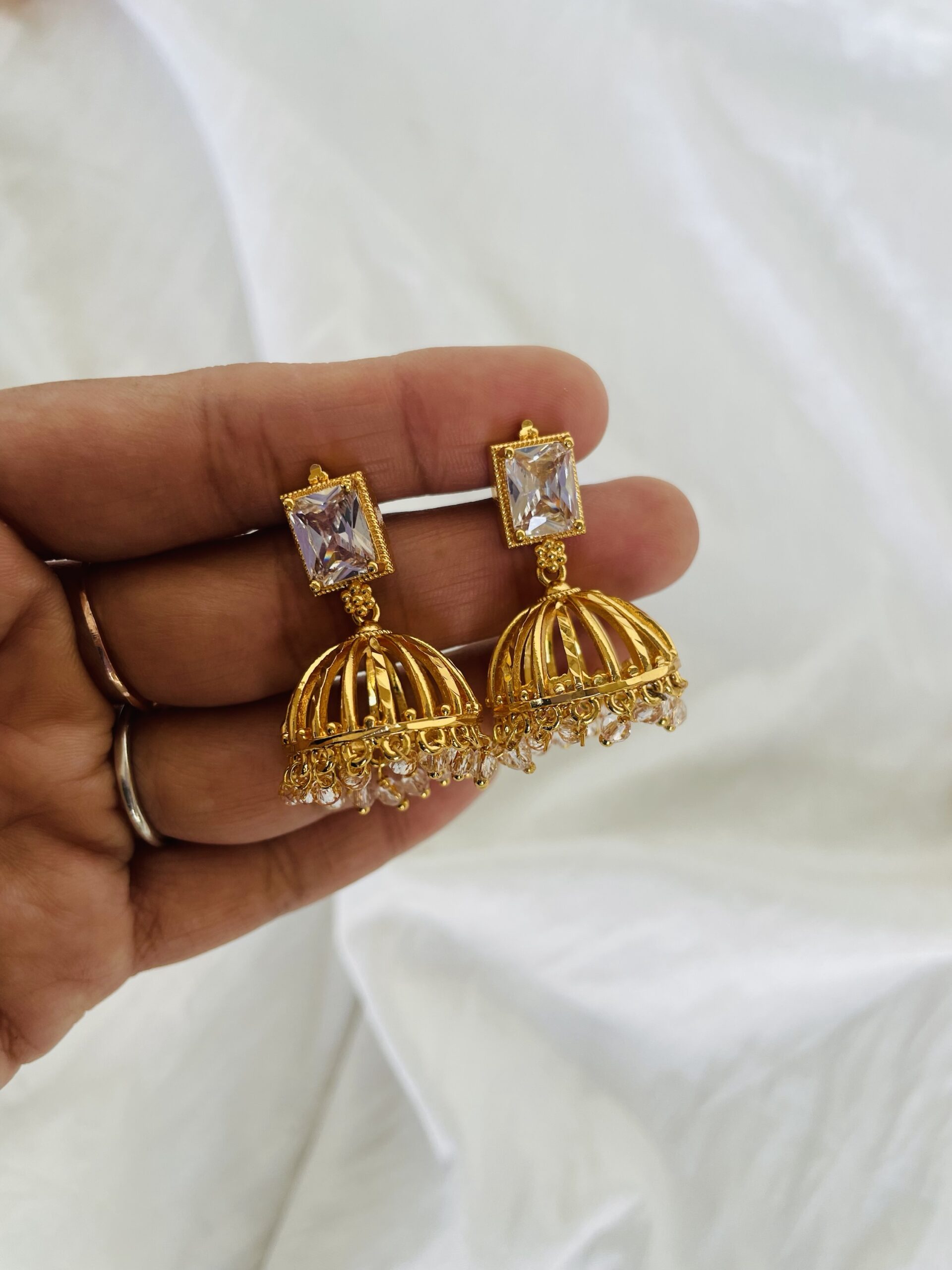 Elegant daily wear AD stone studs with 1+ year color lasting. Waterproof and lightweight — perfect for everyday elegance and comfort.